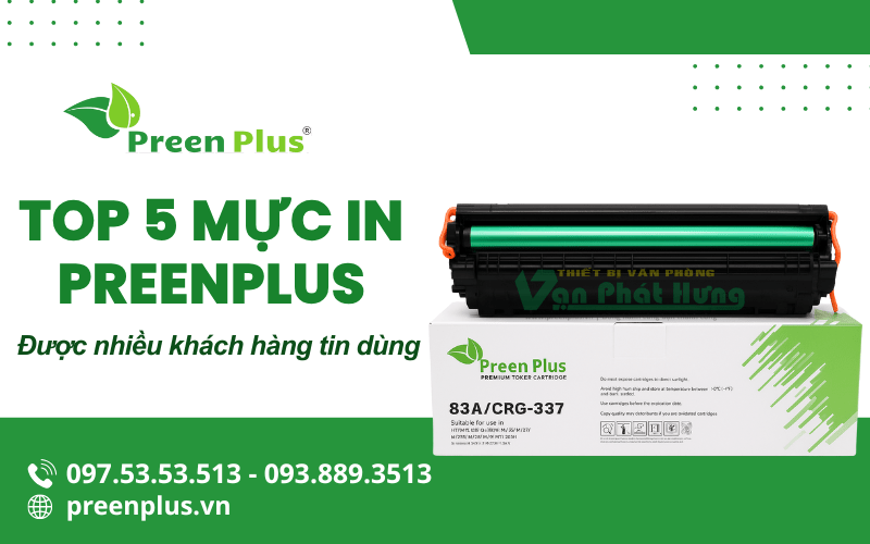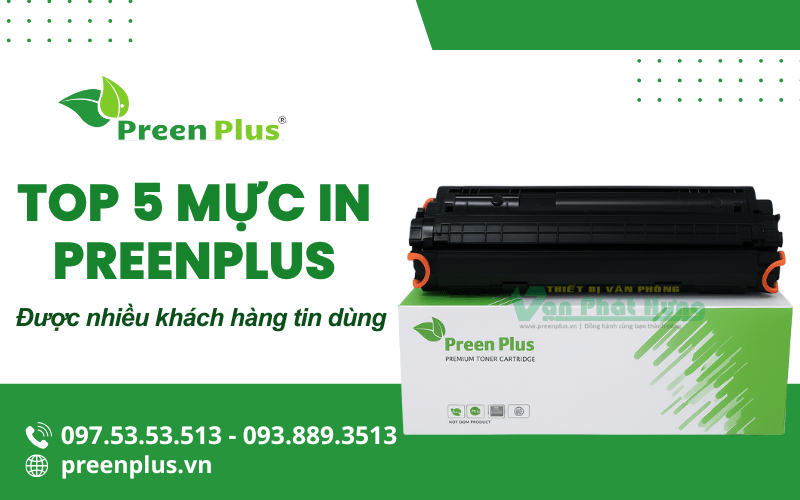 Vạn Phát Hưng là địa chỉ cung cấp mực in uy tín hàng đầu tại TP. Hồ Chí Minh. Công ty mang đến cho khách hàng đa dạng thương hiệu mực in, tương thích với nhiều dòng máy in khác nhau. Tại đây, còn đem lại mức giá vô cùng cạnh tranh và chính sách hỗ trợ khách hàng nhanh chóng. Cùng điểm qua top 5 sản phẩm mực in Preenplus được nhiều người tin dùng nhất hiện nay ngay dưới đây nhé.